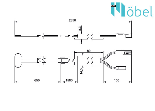 A kapcsoló szalagos (kábeles) kivitelű, így könnyen elhelyezhető bútorban, polc alatt vagy rejtett helyeken.