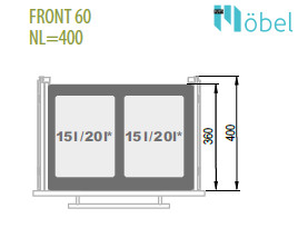 REJS SEGREGO Kihúzható szemetes (2x15L), 60-as szekrénybe H-320, 480 mm mélység